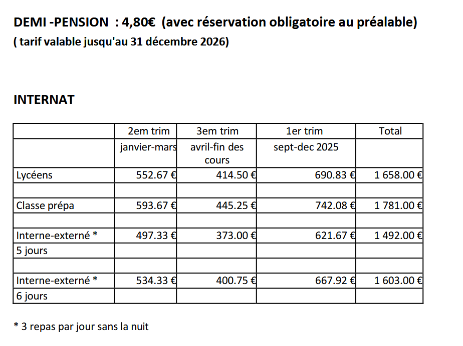 pour paiement en ligne et la réservation des repas pour les demi-pensionnaires :