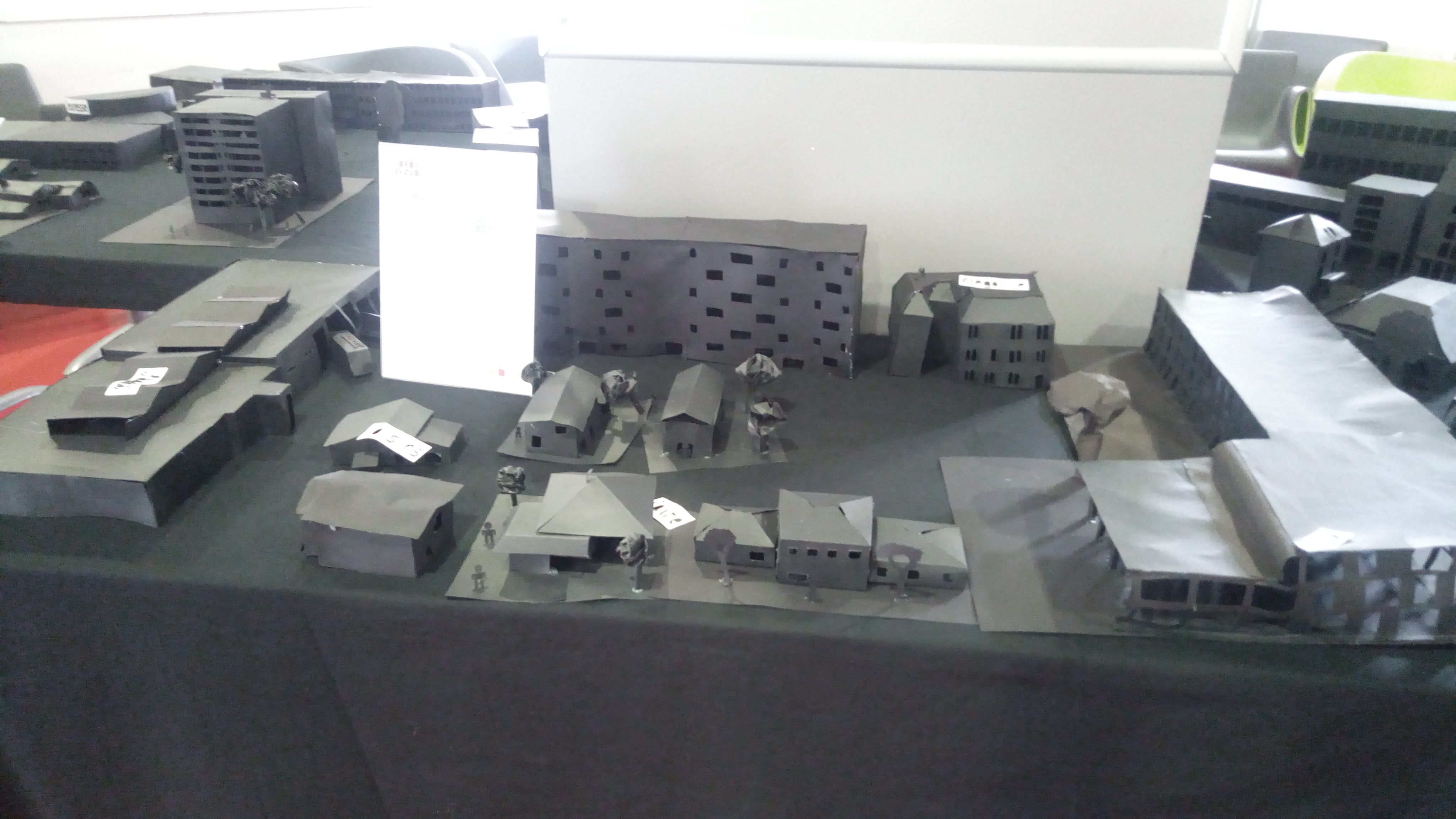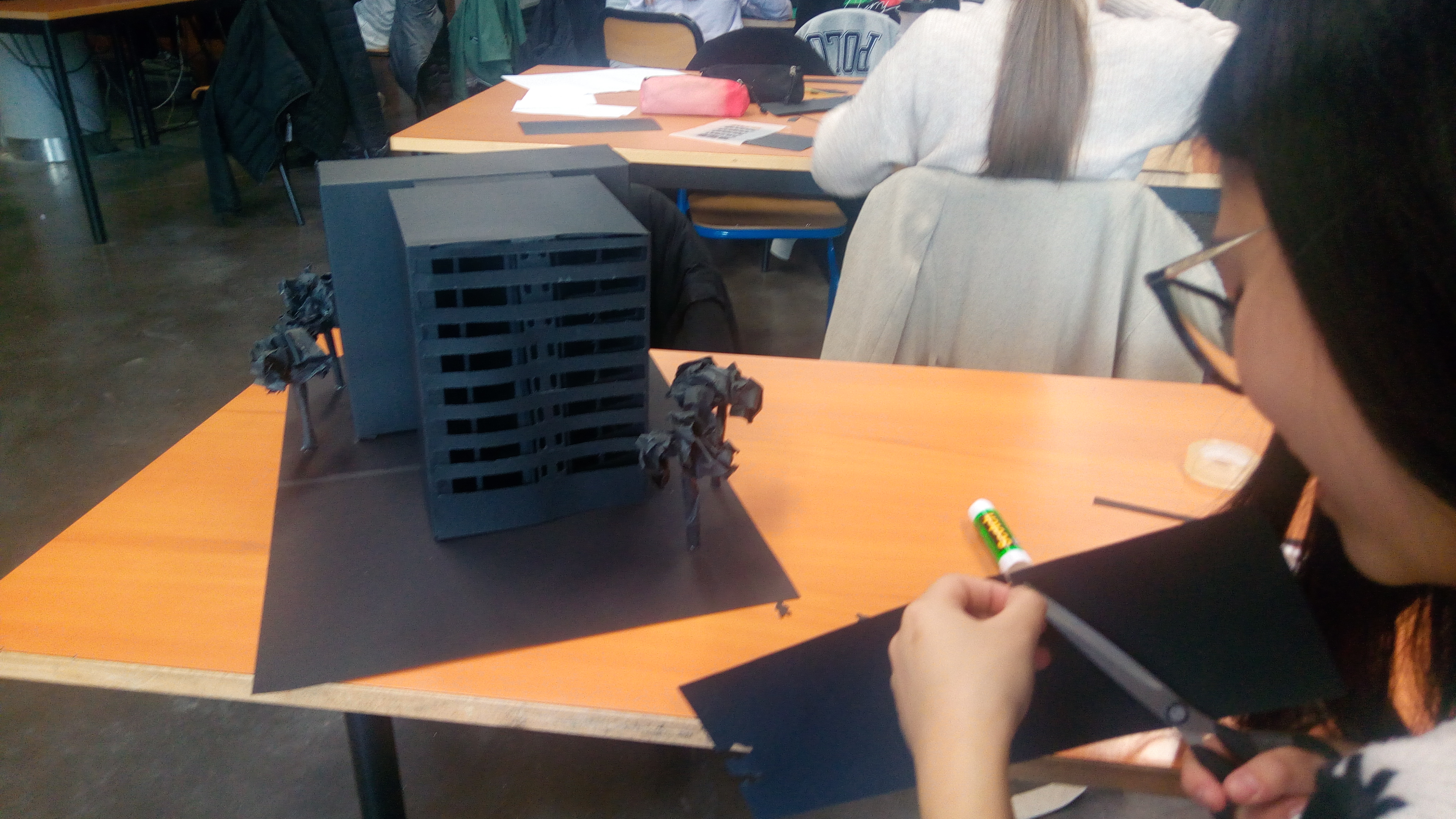 Les lycéens ont dans un premier temps étudié l’architecture de 2 bâtiments voironnais avec l’aide de Laurence Pinzetta du Pays d’Art de d’Histoire du Pays Voironnais. Ensuite, encadrés par le plasticien Mathieu Barrachin, ils ont reconstitué des bâtiments de 4 quartiers de Voiron : le centre-ville, Faton, le collège La Garenne. Ils sont partis des plans cadastraux pour reconstituer au mieux les façades et créer les volumes.